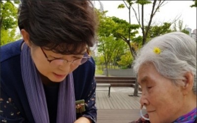 <우리문화신문>고려박물관 회원 마츠자키 씨, 오희옥 지사 병문안