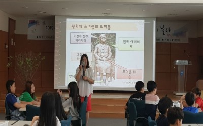 천홍석 기자 승인 2019.06.10 15:43 댓글 0기사공유하기프린트메일보내기글씨키우기학생들에게 올바른 역사인식 확립6월10일 오전9시 용인평화의 소녀상 관리위원회에서는, 용인시청 비전홀에서 사람과 평화 소속 강사를 초청, 관내 초등학교인 서룡초등학교 6학년 학생들30여명에게, 일본군 위안부 피해자 할머…