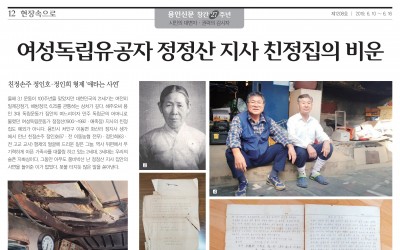 <용인신문>여성독립유공자 정정산지사 친정집의 비운